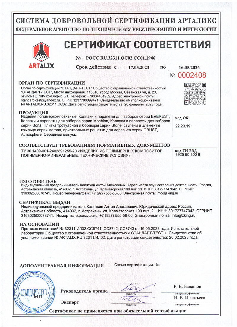 Сертификаты соответствия ZKING для Калуги